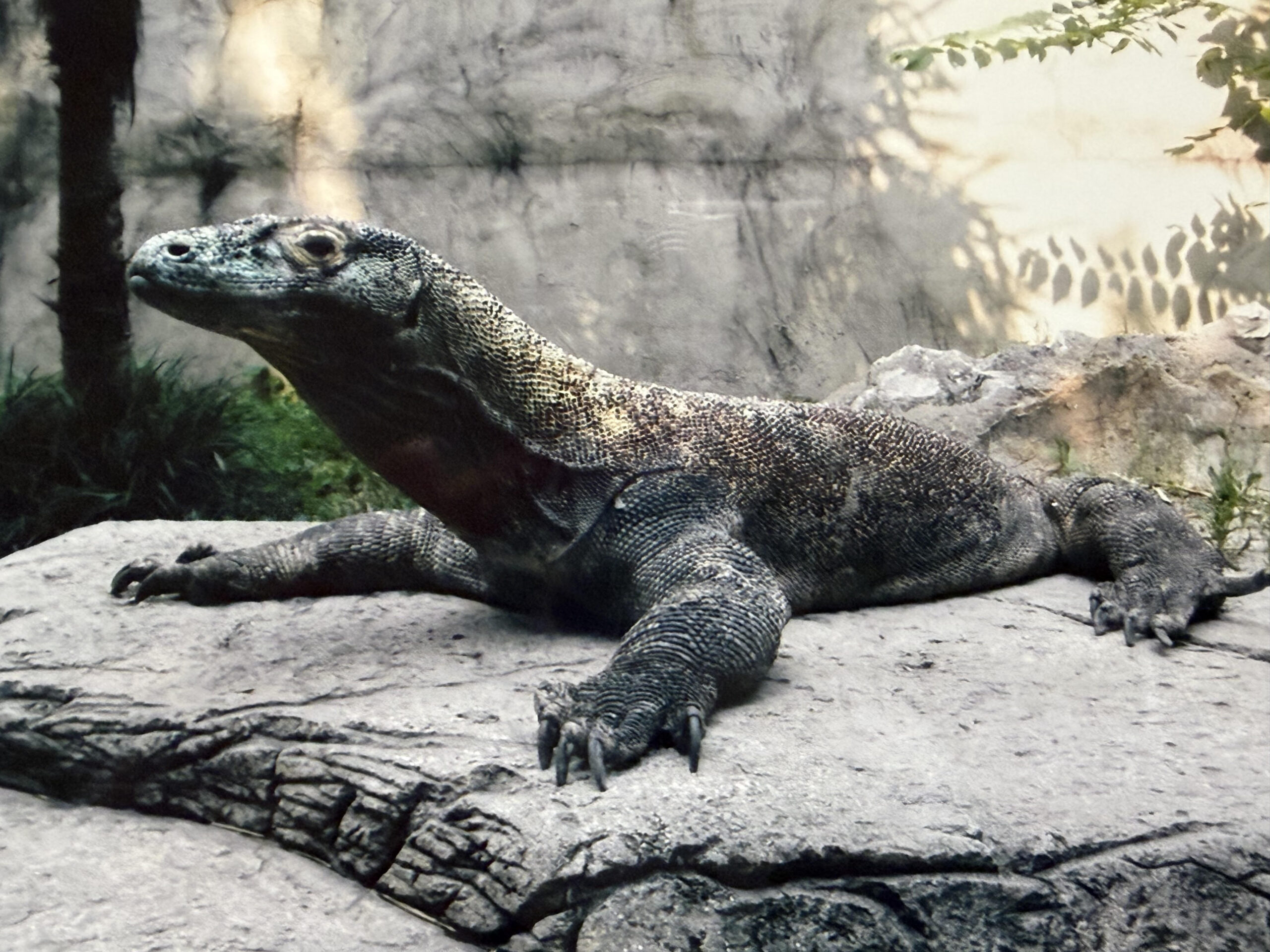 Studying a Komodo dragon—safely separated by a moat—at the Memphis Zoo.